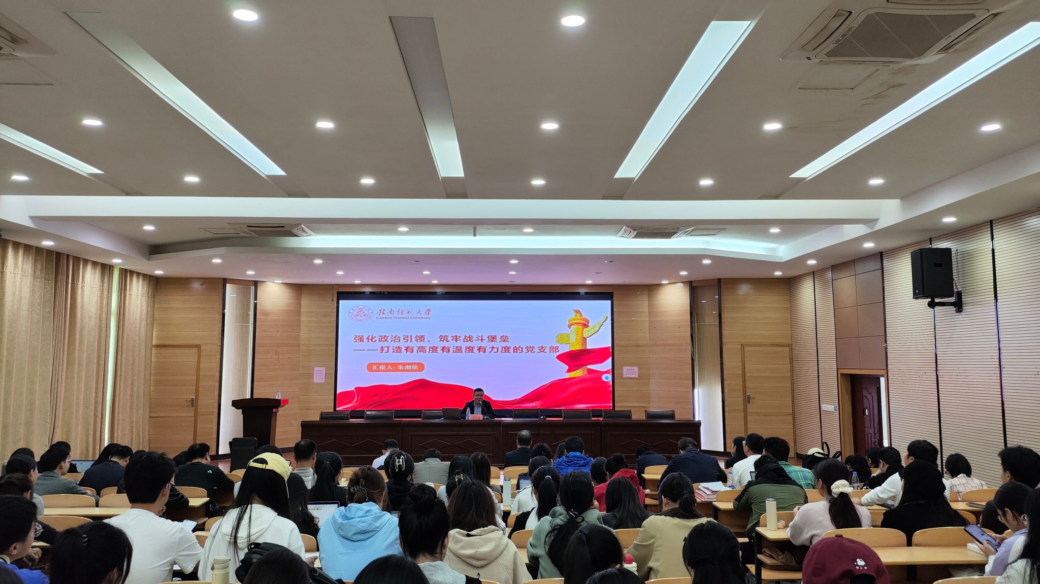 近日,“新时代赣鄱先锋——一心为民好支书”,文学与新闻传播学院副院长朱湘铭为全院师生党员作题为《强化政治引领,筑牢战斗堡垒——打造有高度有温度有力度的党支部》的专题宣讲,分享了全省党建工作样板支部的建设经验。