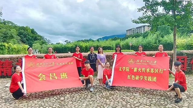 活动中,实践团寻访了会昌县非物质文化遗产展馆、洞头乡蓝氏祠堂、风景独好园、毛泽东旧居、青云学堂等红色景点,为会昌县麻州镇社会敬老院的老人们精心献上一次有情感、有温度的文艺演出。在风景独好园、和君小镇、朱德旧居共建了“赣南师范大学会昌班文化育人实践基地”并举行授牌仪式。
